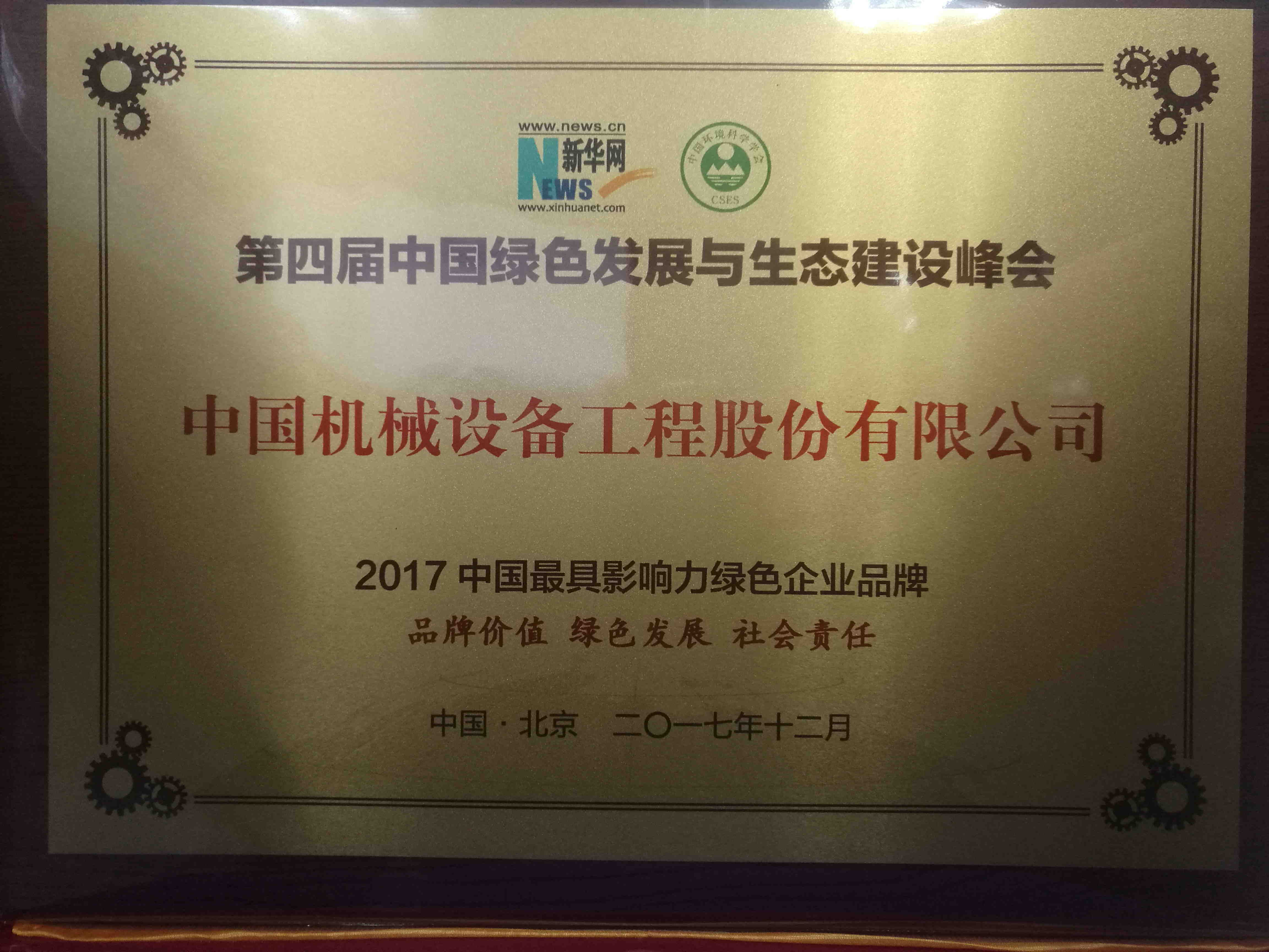 CMEC荣膺“2017中国最具影响力绿色企业品牌”